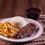 Todos acompanham arroz branco, feijão (de caldo ou tropeiro) batata frita e salada